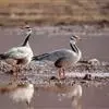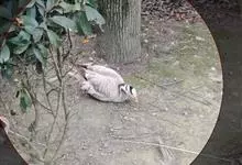 斑头雁是雁形目鸭科雁属鸟类,又称白头雁、黑纹头雁。通体大都灰褐色,头和颈侧白色,头顶有两道黑色带斑;虹膜暗棕色,嘴橙黄色,嘴甲黑色,脚和趾橙黄色;背部淡灰褐色,羽端缀有棕色,形成鳞状斑;颏、喉污白色,…全部>>