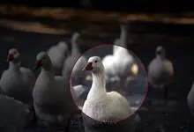 雪雁是鸭科雁属鸟类,雁属中体形大,个体重的鸟类。羽毛洁白,翼角黑色。飞行时双翼拍打用力,振翅频率高。脖子较其他雁类略短长。腿位于身体的中心支点,行走自如。有扁平的喙,边缘锯齿状,有助于过滤食物。…全部>>
