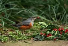 灰背鸫,又名灰乌鸫,是雀形目鸫科鸫属鸟类。雄鸟额及整个上体为橄榄灰色,眼先黑色,头侧微沾棕褐色,耳羽黑褐色杂以细白羽干纹;飞羽和尾羽褐黑色,外翈缀有灰蓝色;下体颏、喉灰白色具黑褐色羽干纹,胸淡灰色,…全部>>