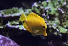 黄高鳍刺尾鱼其体卵圆而侧扁,背鳍及臀鳍硬棘尖锐,前方软条较后方延长,呈伞形;尾鳍截平。尾棘在尾柄前部,稍可活动。幼鱼及成鱼体、头部及各鳍皆一致呈鲜黄色;胸鳍有狭暗缘;尾柄棘白色。…全部>>