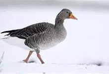 灰雁:体长70-90厘米,翼展147-182厘米,体重2.5-4千克,寿命17年。体大而肥胖。嘴、脚肉色,上体灰褐色,下体污白色,飞行时双翼拍打用力,振翅频率高。脖子较长。腿位于身体的中心支点,…全部>>