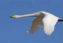 小天鹅为大型水禽,体长110~130厘米,体重4~7千克,雌鸟略小。它与大天鹅在体形上非常相似,同样是长长的脖颈,纯白的羽毛,黑色的脚和蹼,身体也只是稍稍小一些,颈部和嘴比大天鹅略短,但很难分辩。最…全部>>