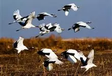 丹顶鹤:是鹤科、鹤属的一种大型涉禽,体长120-160厘米。颈、脚较长,通体大多白色,头顶鲜红色,喉和颈黑色,耳至头枕白色,脚黑色,站立时颈、尾部飞羽和脚黑色,头顶红色,…全部>>