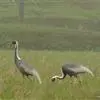 蓑羽鹤大型涉禽,体长68~92厘米,是鹤类中个体最小者。通体蓝灰色,眼先、头侧、喉和前颈黑色,眼后有一白色耳簇羽极为醒目。前颈黑色羽延长,悬垂于胸部。脚黑色,飞翔时翅尖黑色。…全部>>