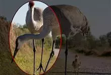 沙丘鹤别名棕鹤、加拿大鹤,是鹤形目鹤科鹤属大型涉禽。成鸟两性相似,雌鹤略小,眼先、前额和头顶裸露部分红色;上体石板灰色,翅覆羽较淡,羽缘锈棕色,羽轴深黑色;尾羽石板灰色,颈部灰蓝色,…全部>>