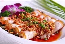 蒜泥白肉是一道菜品,属于川菜菜系,制作原料主要有蒜泥、肉等,口味鲜美,营养丰富,食时用筷拌合,随着热气,一股酱油、辣椒油和大蒜组合的香味直扑鼻端,使人食欲大振。蒜味浓厚,肥而不腻。全部>>