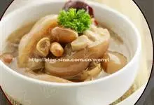 花生猪蹄汤是用花生、猪蹄制作的一道家常菜。 花生含有维生素E和一定量的锌,能增强记忆,抗老化,延缓脑功能衰退,滋润皮肤。全部>>