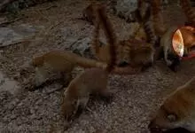 浣熊:食肉目、浣熊科的一种哺乳动物,成年体长40-65厘米,尾长20-40厘米,体重4-10千克,雄性稍大于雌性。体型较小。面部有黑色眼斑,形象滑稽,绰号“蒙面大盗”;尾部有5到7条黑白相间的环纹。…全部>>
