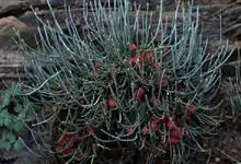 爆仗竹是车前科爆仗竹属植物。直立、木贼状半灌木,高可达1米,全体无毛。茎分枝轮生,细长,具棱。叶轮生,退化为披针形的鳞片。聚伞圆锥花序狭长,总花梗长达3厘米,苞片钻形;花梗长近1厘米;花萼小,深裂过半,…全部>>