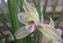 莲瓣兰是兰科、兰属植物。莲瓣兰为细长的线形,叶片质地较软,稍革质化,弓形弯垂,长35-60厘米,宽0.4-0.6厘米。叶基部有稍膨大的假鳞茎可储存水分和养分,根为圆柱状肉质根,直径0.5-1厘米,…全部>>