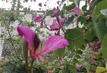 羊蹄甲,别名紫花羊蹄甲、玲甲花,是豆科羊蹄甲属的一种常绿乔木或灌木。树冠开展,枝桠低垂;树皮灰色至暗褐色,近光滑。枝幼时微被灰色短柔毛,后毛脱落;叶硬纸质,近圆形,基部浅心形,…全部>>