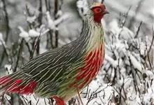 血雉雉科血雉属鸟类,别名血鸡、松花鸡,血雉的雄鸟大覆羽、尾下覆羽、尾上覆羽、脚、头侧、腊膜为红色,故称血雉。其别名甚多,各地皆异。在甘肃,因其胸侧和翅上覆羽沾绿,被称为“绿鸡”;因其羽毛形似柳叶,…全部>>