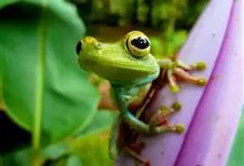树蛙是树蛙科两栖动物的统称。树蛙体中等或大,一般雄蛙吻端斜尖,雌蛙吻端高钝;舌后端缺刻深,梨骨齿发达,鼓膜明显,指间有蹼或蹼发达,趾间近全满蹼,外侧跖较发达;鼻骨小、蝶筛骨显露,额顶宽或宽短,…全部>>