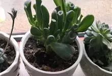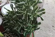 筒叶花月,是景天科青锁龙属的多年生草本植物。植株多分株,灌木状,茎较粗壮,圆柱形,表皮灰褐色;叶片肉质,互生,呈圆筒状,簇生于茎或分枝顶端,叶端呈斜截形,截面为椭圆形;花呈星状,淡白色;花期秋季。…全部>>