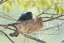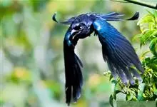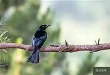 发冠卷尾是中型鸟类,体长28-35厘米。通体绒黑色缀蓝绿色金属光泽,额部具发丝状羽冠,外侧尾羽末端向上卷曲。栖息于海拔1500米以下的低山丘陵和山脚沟谷地带,多在常绿阔叶林、次生林或人工松林中活动。…全部>>