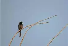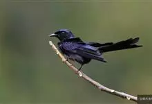 黑卷尾是雀形目卷尾科一属,又称铁练甲、铁燕子、铁林哥、羊蹄刺、榨油郎,体长约30厘米全身蓝黑色而具金属光泽,尾长且分叉较深。幼鸟似成鸟,金属光泽弱,下腹部具近白色的横纹。虹膜暗红色,嘴黑色,脚黑色。…全部>>