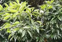 天竺桂,是樟科樟属乔木植物,枝条细弱呈圆柱形,无毛;叶近对生或在枝条上部互生,呈卵圆状长圆形或披针形,上面绿色,下面灰绿色;花序梗与序轴均无毛,花被片呈卵形;果长圆形,…全部>>