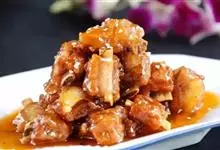 糖醋排骨,是糖醋味型中具有代表性的一道大众喜爱的特色传统名菜。它选用新鲜猪子排作主料,肉质鲜嫩,…全部>>