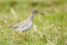 红脚鹬:体长28厘米,上体褐灰,下体白色,胸具褐色纵纹。飞行时腰部白色明显,次级飞羽具明显白色外缘。尾上具黑白色细斑。虹膜黑褐色,嘴长直而尖,基部橙红色,尖端黑褐色。脚较细长,亮橙红色,…全部>>