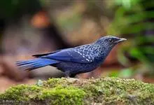 紫啸鸫是雀形目鹟科啸鸫属鸟类,又称黑雀儿,山鸣鸡、乌精。成鸟眼先及颏绒黑色;前额、头顶至背及肩羽和颈侧呈深紫蓝色,羽端具较密集的亮蓝色点斑;腰至尾上覆羽的深紫蓝色较暗而杂黑褐色,…全部>>