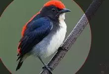 朱背啄花鸟:体重6-8克,体长81-97毫米。是一种小型的黑色及红色啄花鸟。雄鸟顶冠、背及腰猩红色,两翼、头侧及尾黑,两胁灰,下体余部白色。雌鸟上体橄榄色,腰及尾上覆羽猩红,尾黑。亚成鸟清灰色,嘴橘黄,…全部>>