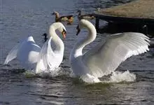 疣鼻天鹅:是鸟纲、鸭科、天鹅属的一种大型的游禽,体长1.2-1.5米,体重6.75-10千克。脖颈细长,前额有一块瘤疣的突起,因此得名。全身羽毛洁白。在水中游泳时,颈部弯曲而略似“S“形。…全部>>