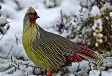 血雉雉科血雉属鸟类,别名血鸡、松花鸡,血雉的雄鸟大覆羽、尾下覆羽、尾上覆羽、脚、头侧、腊膜为红色,故称血雉。其别名甚多,各地皆异。在甘肃,因其胸侧和翅上覆羽沾绿,被称为“绿鸡”;因其羽毛形似柳叶,…全部>>