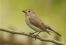橙胸姬鹟:体长12-16厘米,是一种体型略小的林栖型鹟。尾黑而基部白,上体橄榄褐色,额具一白色横带,两端向上延伸至眼上形成眉斑。翼橄榄色,下体灰。成年雄鸟额上有狭窄白色并具小的深红色项纹,常不明显。…全部>>