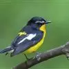 白眉姬鹟是小型鸟类,体长11-14厘米。雄鸟上体大部黑色,眉纹白色,在黑色的头上极为醒目。腰鲜黄色,两翅和尾黑色,翅上具白斑。下体鲜黄色。雌鸟上体大部橄榄绿色。腰鲜黄色,翅上亦具白斑。下体淡黄绿色。…全部>>