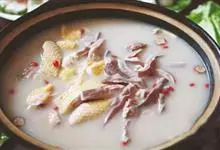 猪肚包鸡,是一道广东省传统的地方名菜,属于客家菜系,又名猪肚煲鸡、凤凰投胎,流行于广东的深圳、惠州、河源、梅州等粤东一带,是广东客家地区酒席必备的餐前用汤,汤里浓中带清,有浓郁的药材味和胡椒香气。…全部>>