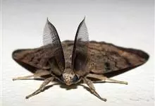 鬼脸天蛾,是鳞翅目天蛾科面形天蛾属动物。成虫翅展100~125毫米,体黑褐色;胸背有骷髅形斑纹;卵圆球形,直径约2毫米,淡黄绿色,表面光滑;老熟幼虫体长70~90毫米,蛹体长约56毫米;前翅为褐色,…全部>>