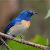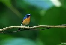 山蓝仙鹟:小型鸟类,体长13-15厘米。雄鸟额基和眼先黑色,颏橙棕色,仅颏尖为蓝黑色,喉、胸、上腹和两胁亦为橙棕色,下体白色范围较小,仅局限于下腹和尾下覆羽。雌鸟上体少黄色,颏、喉、胸概为锈红色,…全部>>