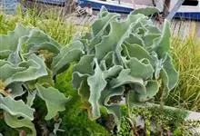 银波锦 DC.)是景天科、银波锦属植物。多浆肉质灌木。茎肉质,直立,株高30-60厘米,小枝白色。对生叶,叶片倒卵形,边缘呈波状,叶面密被银灰色粉,叶长8-12厘米,宽6厘米左右。聚伞状圆锥花序,…全部>>