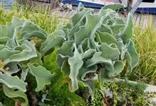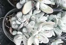 银波锦 DC.)是景天科、银波锦属植物。多浆肉质灌木。茎肉质,直立,株高30-60厘米,小枝白色。对生叶,叶片倒卵形,边缘呈波状,叶面密被银灰色粉,叶长8-12厘米,宽6厘米左右。聚伞状圆锥花序,…全部>>
