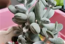 福娘为景天科银波锦属的肉质草本植物。对生的叶片呈短棒状,叶色灰绿,表覆白粉,叶缘外围镶着紫红色,叶片外形多有变化有短圆形、厚厚的方形等不同叶形;花期夏秋。福娘原产于非洲西南部的纳米比亚,…全部>>
