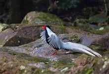 白鹇,是鸡形目雉科鹇属的一种留鸟。雄鸟上体白色并具黑色纹,下体黑色,头顶具黑色长羽冠,尾白而长;雌鸟体型较小,以橄榄褐色为主,下体具白色或皮黄色细纹;虹膜褐色,眼周具红色裸皮,喙黄色,脚鲜红色。…全部>>
