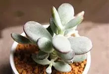 福娘为景天科银波锦属的肉质草本植物。对生的叶片呈短棒状,叶色灰绿,表覆白粉,叶缘外围镶着紫红色,叶片外形多有变化有短圆形、厚厚的方形等不同叶形;花期夏秋。福娘原产于非洲西南部的纳米比亚,…全部>>