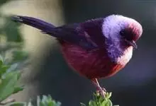 藏朱雀:全长约17-18厘米。雄鸟头部深红色具光辉,喉部暗红色具白色点斑;背部灰白色,各羽具玫瑰红色羽端,形成许多斑纹;腰部淡玫瑰红色;翅暗褐色,沾灰白,羽端沾玫瑰红或灰白色;尾暗棕色,端缘玫瑰红色…全部>>