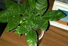 瓜栗 Walp. ),俗称发财树,木棉科小乔木,高4-5米,树冠较松散,幼枝栗褐色,无毛。小叶具短柄或近无柄。花单生枝顶叶腋;花梗粗壮,被黄色星状茸毛,脱落;萼杯状,近革质;花瓣淡黄绿色,狭披针形…全部>>
