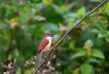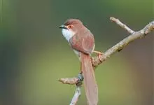 棕头雀鹛为鸦雀科,褐鹛属小型鸟类,体长10-13厘米。头顶栗褐色具黑色侧冠纹。上体茶黄色,飞羽外侧表面灰白色,内侧表面红棕色,内外二色之间夹有黑色。颏、喉白色具不明显的暗色纵纹,胸沾葡萄灰色,…全部>>