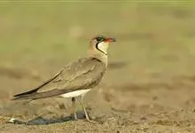 燕鸻pratincole,亦作swallow plover。燕鸻科燕鸻亚科6~7种旧大陆海滨鸟类。体长约20公分,体褐色,腰白色;叉尾,翅长而尖。晨昏飞行在河流、湖泊上空捕食昆虫。…全部>>