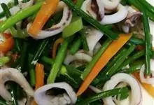 韭菜炒鱿鱼菜品 > 鱼 > 鱿鱼 > 韭菜炒鱿鱼