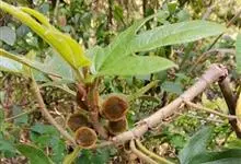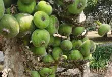 大果榕是桑科榕属的小乔木,株高可达10米;幼枝被柔毛;叶互生,宽卵状心形或近圆形;雄花无梗、匙形、花丝长,雌花生于雌株榕果内,子房白色;榕果簇生于树干基部或老茎短枝上、扁球形或陀螺形,…全部>>