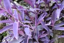 紫竹梅 D. R. Hunt),鸭跖草科紫露草属植物的多年生草本植物,茎多分枝,带肉质,紫红色,节上常生须根,上部近于直立;叶互生,披针形,先端渐尖,基部抱茎而成鞘,鞘口有白色长睫毛,上面暗绿色,…全部>>