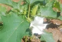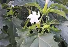 曼陀罗,茄科曼陀罗属一年生大型草本植物,全株光滑。有臭气;叶呈广卯形,边缘具不规则波状浅齿裂;花单生于枝杖间或叶腋,直立,有短梗;花萼是筒状裂片三角形,颜色为白色或淡紫色;果实为蒴果卵状,…全部>>