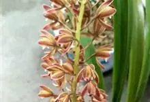 建兰 Sw.):地生植物;假鳞茎卵球形,包藏于叶基之内。叶2-6枚,带形,有光泽,长30-60厘米,宽1-2.5厘米。花葶从假鳞茎基部发出,直立,一般短于叶;总状花序具3-9朵花;花常有香气,…全部>>