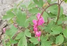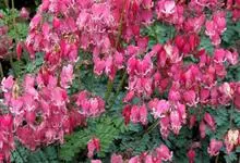 荷包牡丹 Fukuhara),是罂粟科荷包牡丹属的多年生草本植物,株高30-60厘米,具肉质根状茎;茎直立呈圆柱形;叶二回三出全裂,状似牡丹叶;总状花序顶生,基部为心形,花瓣紫红色至粉红色,稀白色,…全部>>