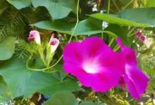 五爪金龙 Sweet),旋花科番薯属多年生缠绕草本植物。茎细长,有细棱;叶片为掌状;花冠紫红色、紫色或淡红色、偶有白色,漏斗状;蒴果近球形。花期5~12月。五爪金龙的叶子类似掌状,有5至7个裂痕,…全部>>