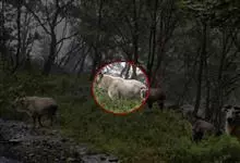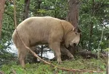 羚牛,偶蹄目牛科羚牛属哺乳动物,俗称扭角羚、野山牛、盘羊。其体形粗壮。尾短。吻鼻部隆起且裸露。前额隆起,毛短而蓬松。角基粗,由头顶长出后先向上升起,又突然翻转,靠近头部,复向外伸,然后又向后弯转,…全部>>