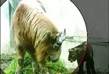 羚牛,偶蹄目牛科羚牛属哺乳动物,俗称扭角羚、野山牛、盘羊。其体形粗壮。尾短。吻鼻部隆起且裸露。前额隆起,毛短而蓬松。角基粗,由头顶长出后先向上升起,又突然翻转,靠近头部,复向外伸,然后又向后弯转,…全部>>
